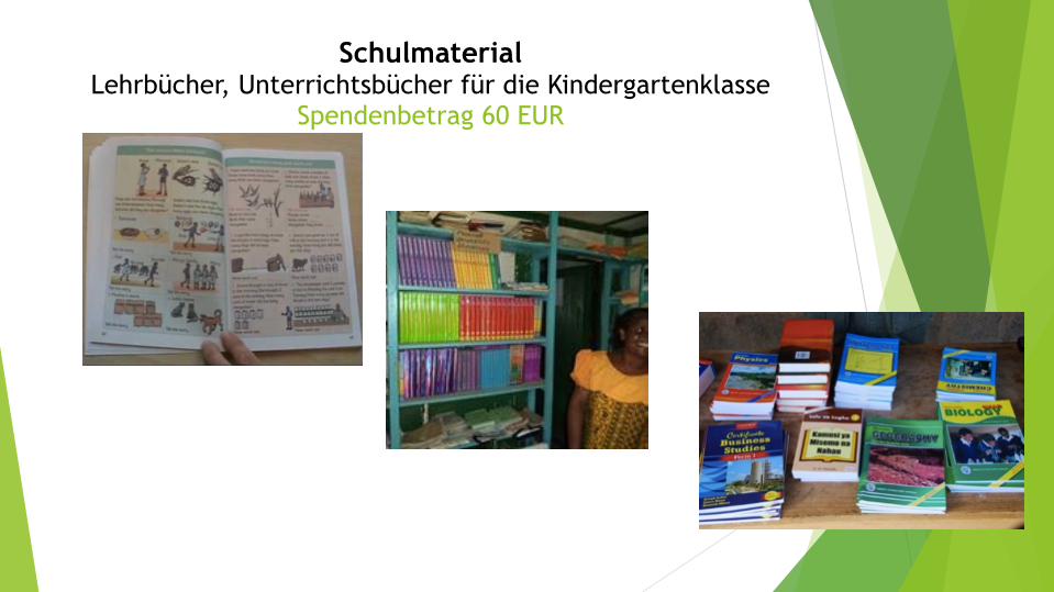Lehrbücher für das Schuljahr im Kindergarten wird angeschafft – es bedarf noch Rücksprache mit der Lehrerin, welche Bücher es sein werden.